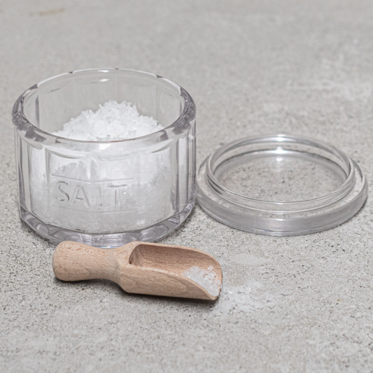 Glass Salt Pot & Wooden Scoop