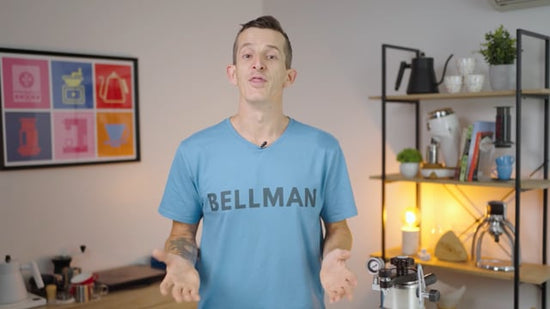 Bundle includes: Bellman stove top espresso maker, Bellman tamper, pack of 100 paper filters, stainless steel milk jug.